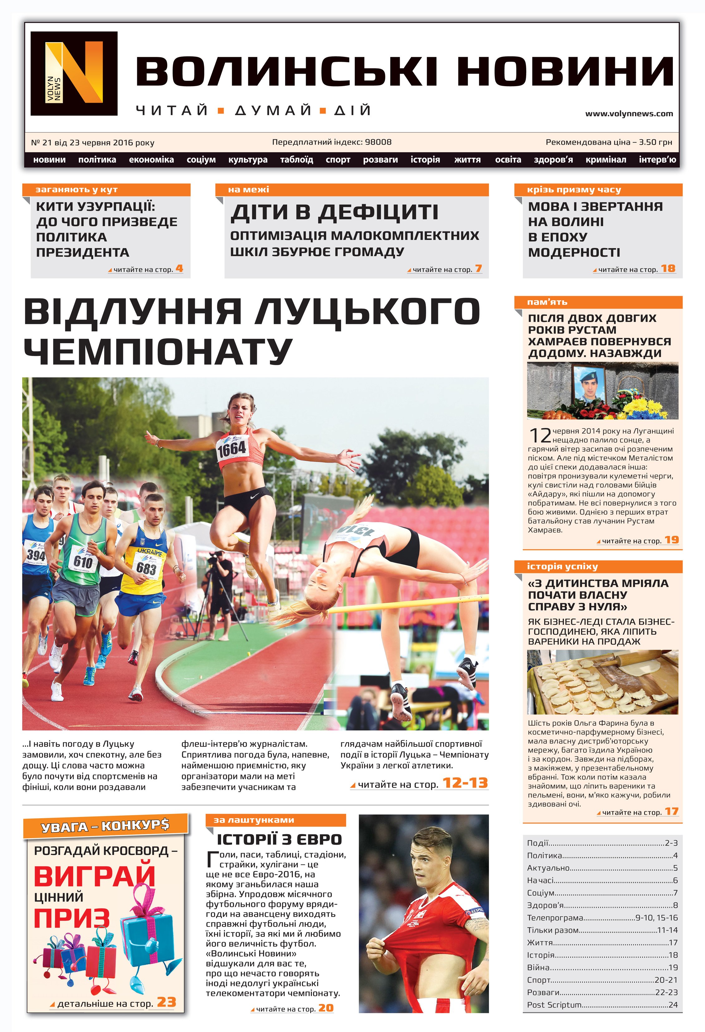 ВОЛИНСЬКІ НОВИНИ №21 ВІД 23.06.2016