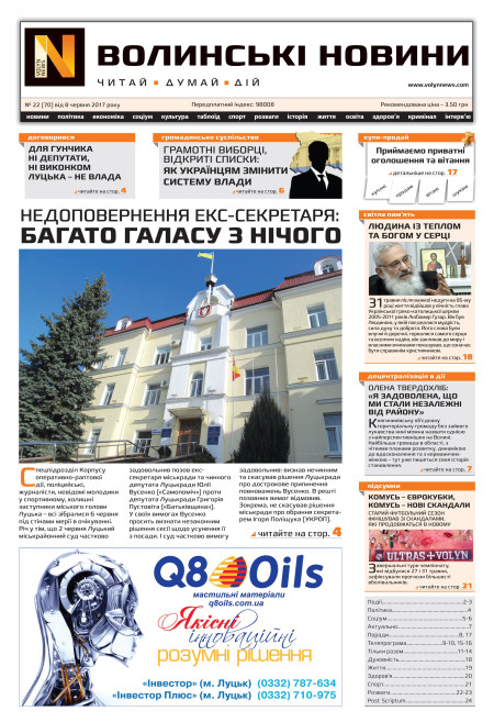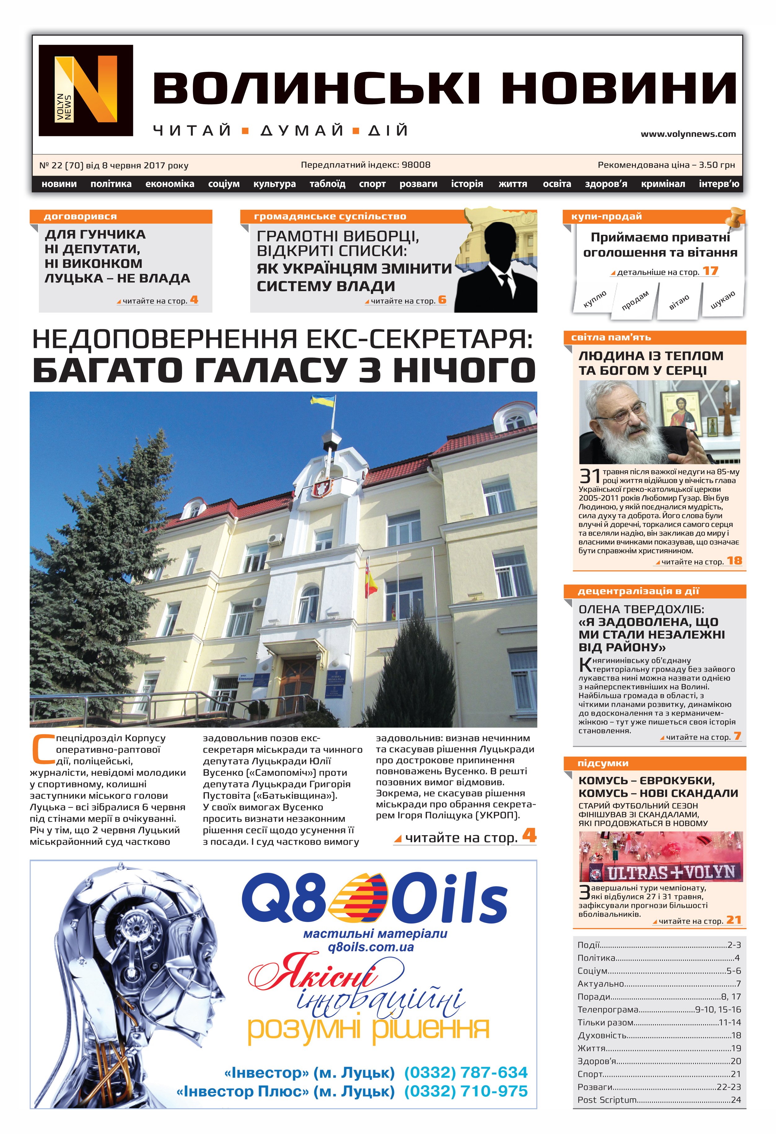 ВОЛИНСЬКІ НОВИНИ №22 (70) ВІД 08.06.2017