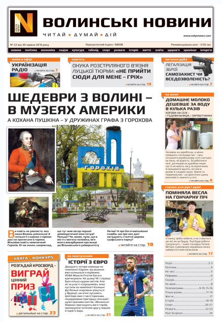 ВОЛИНСЬКІ НОВИНИ №22 ВІД 30.06.2016