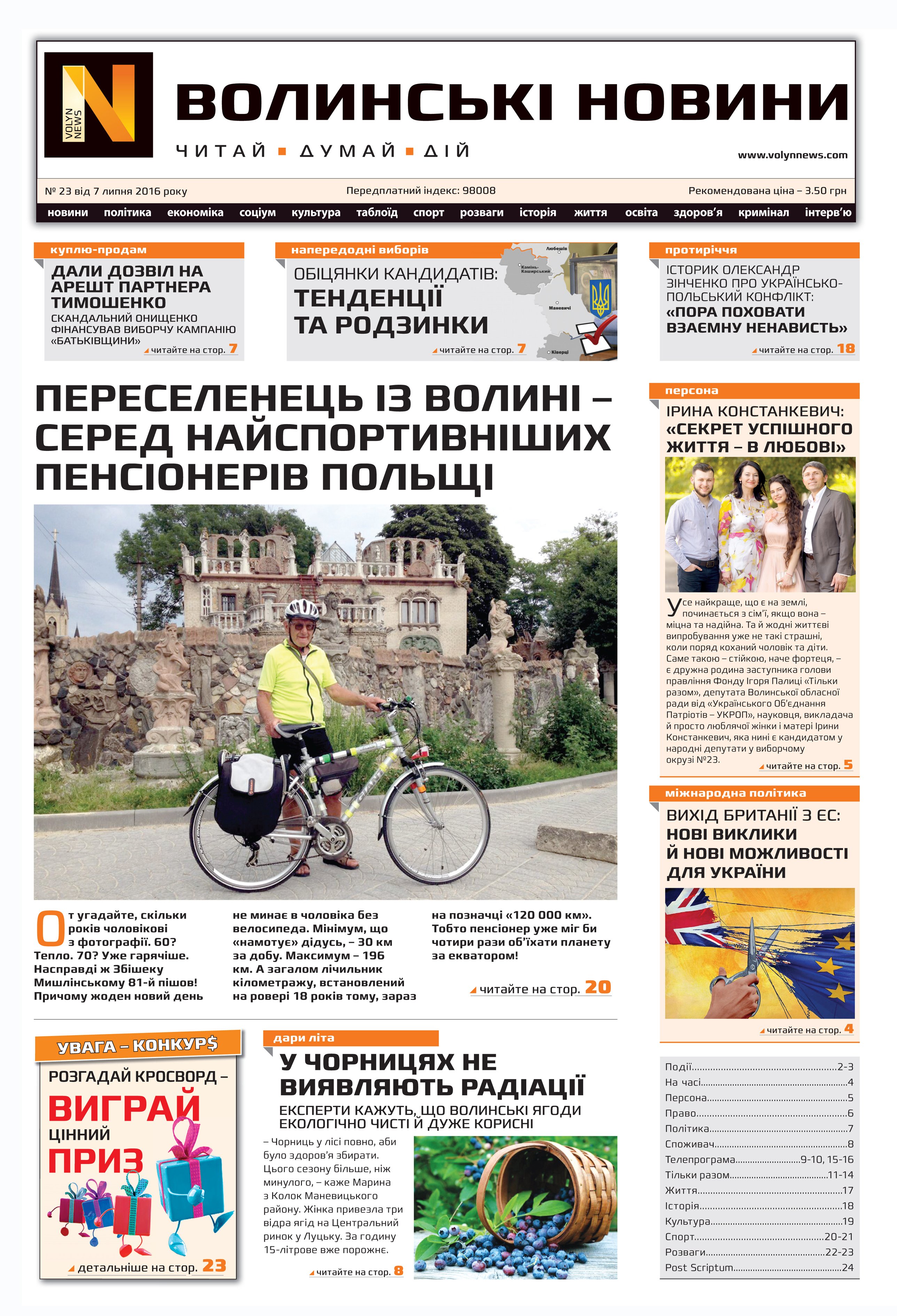 ВОЛИНСЬКІ НОВИНИ №23 ВІД 07.07.2016