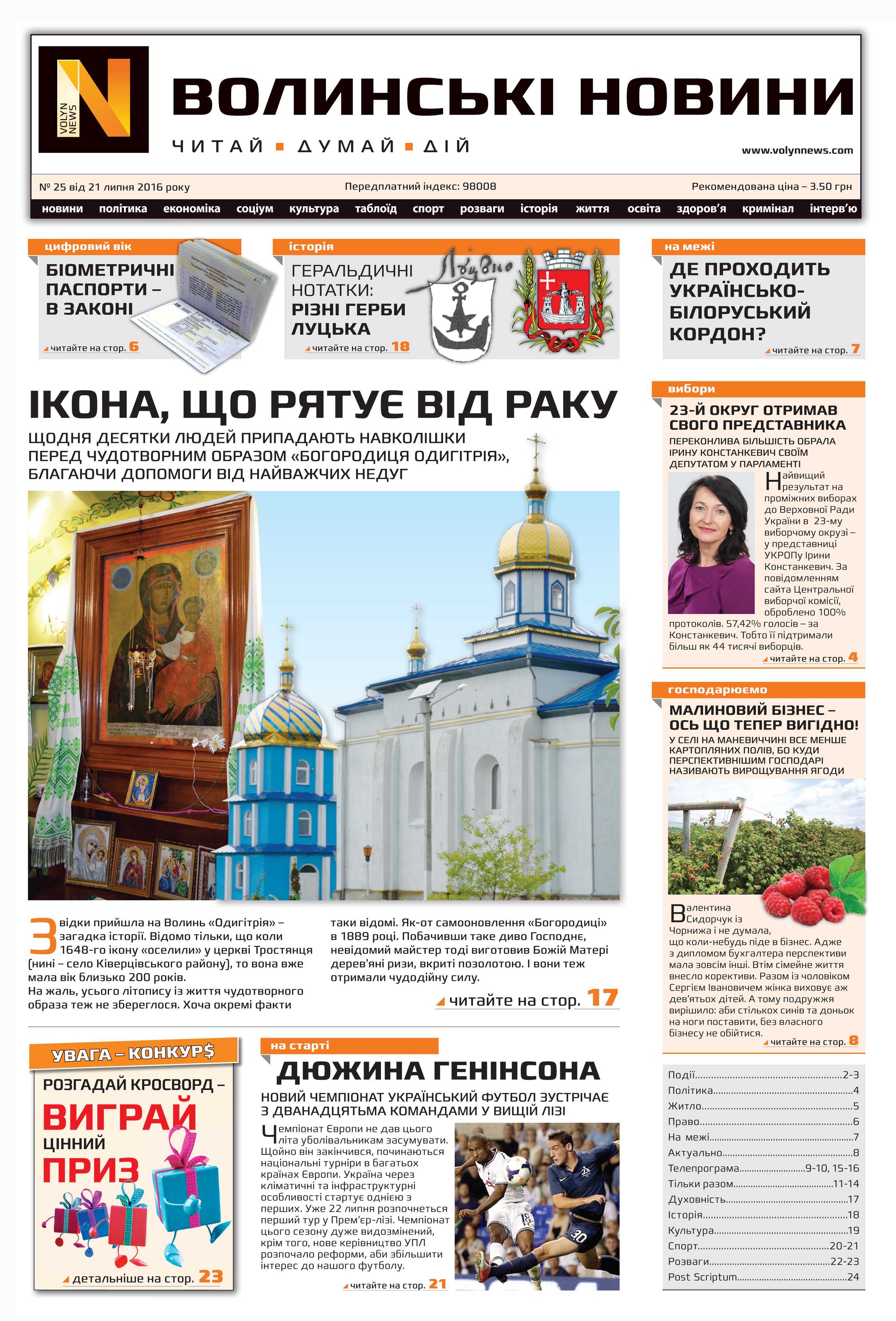 ВОЛИНСЬКІ НОВИНИ №25 ВІД 21.07.2016