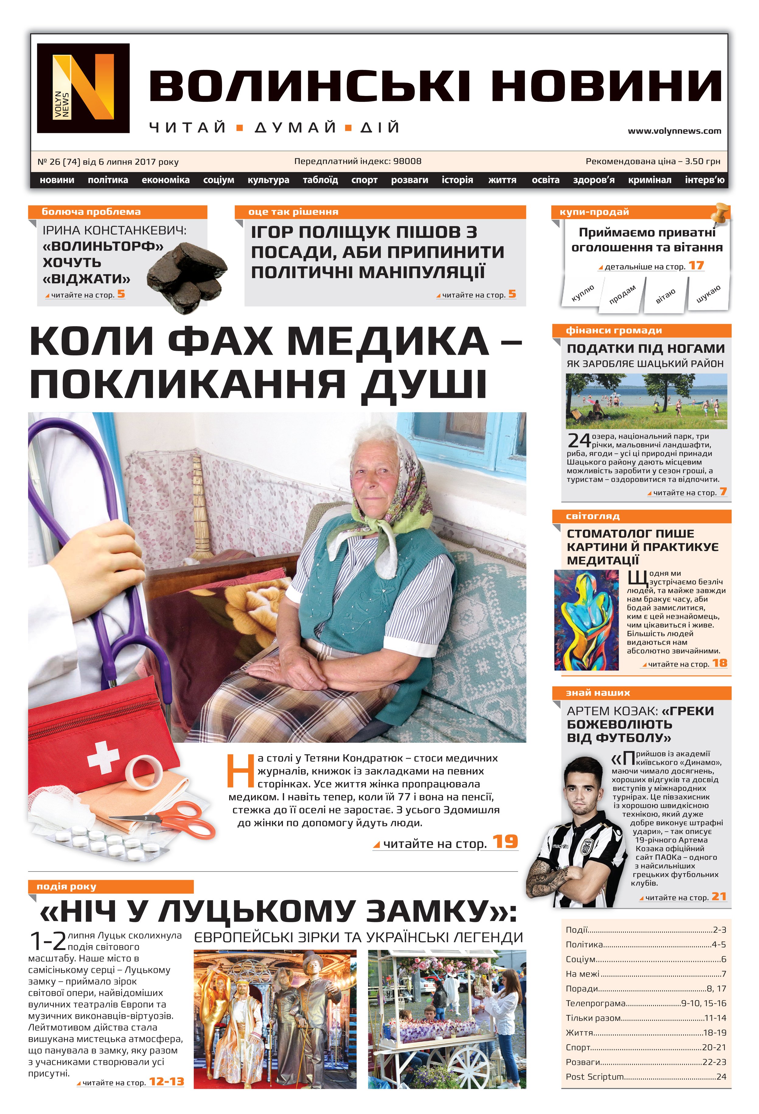 ВОЛИНСЬКІ НОВИНИ №26 (74) ВІД 06.07.2017