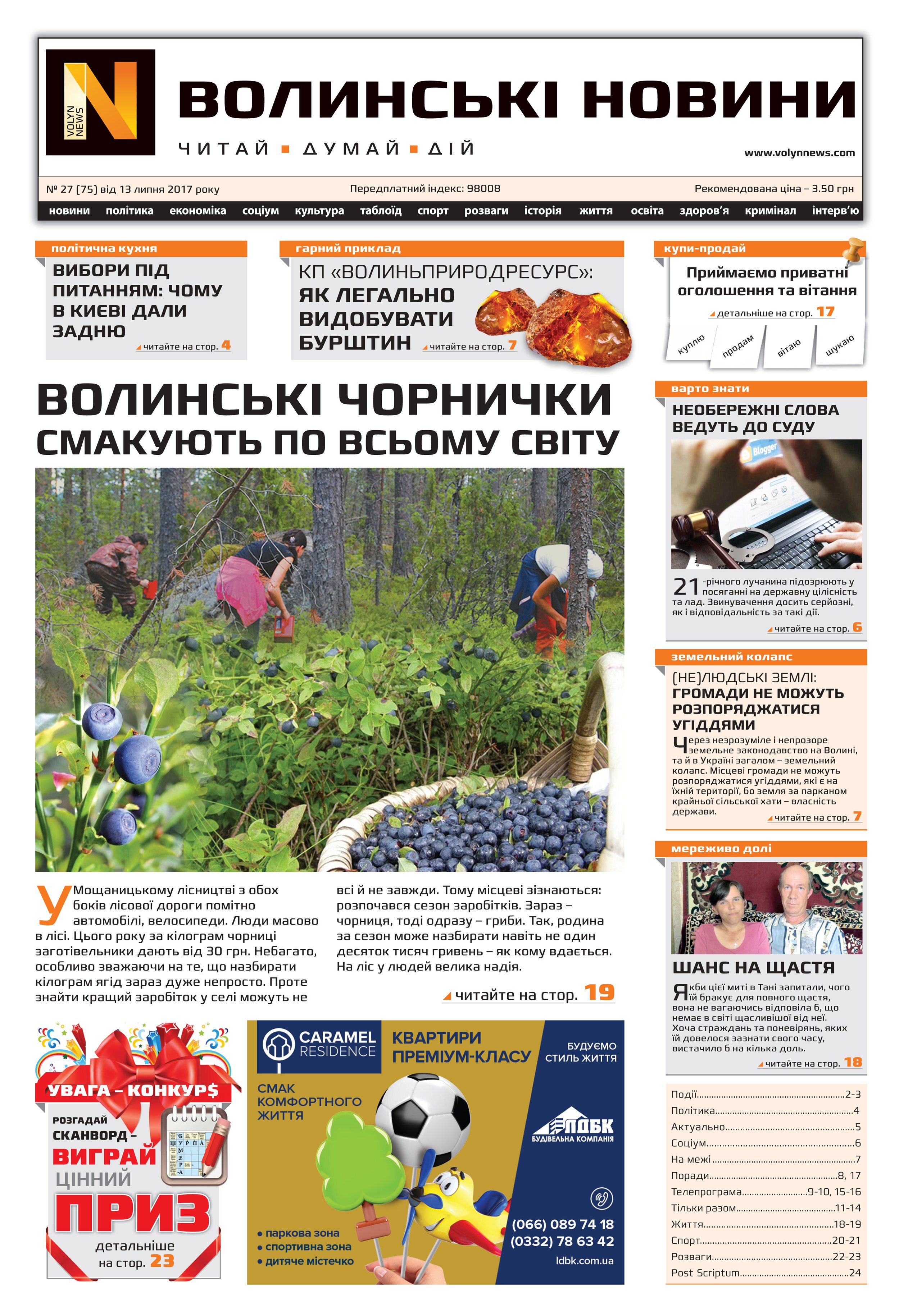 ВОЛИНСЬКІ НОВИНИ №27 (75) ВІД 13.07.2017