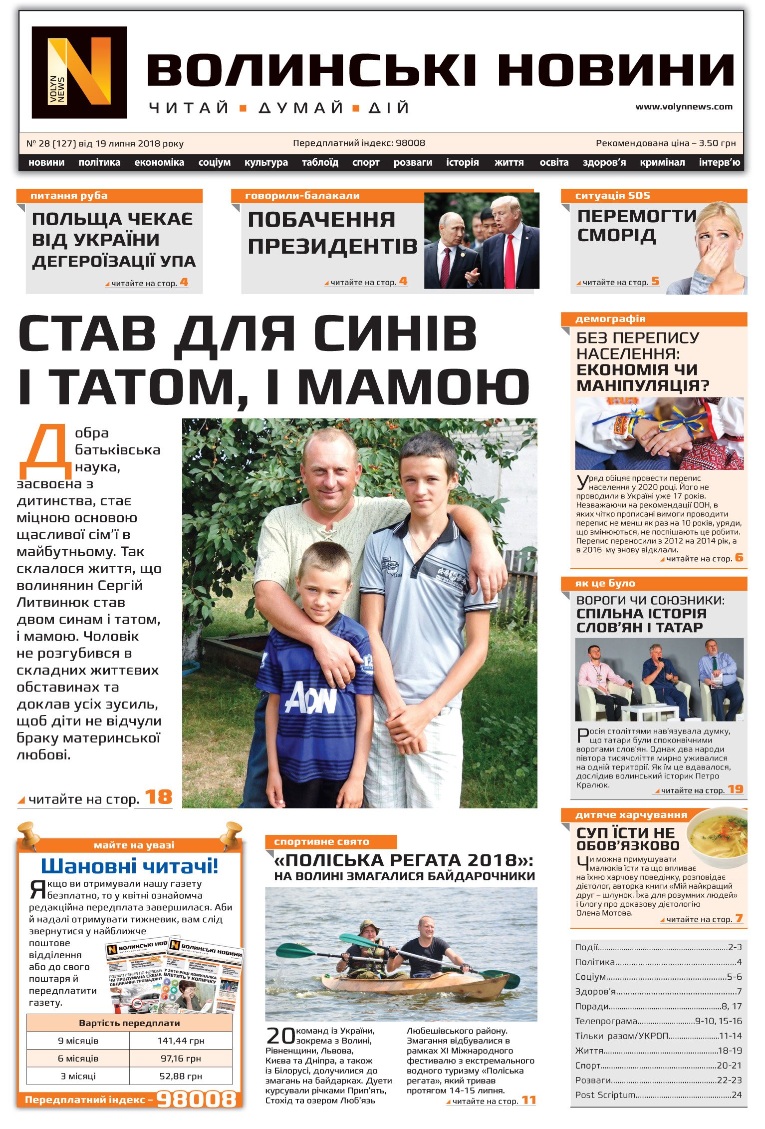 ВОЛИНСЬКІ НОВИНИ №28 (127) ВІД 19.07.2018