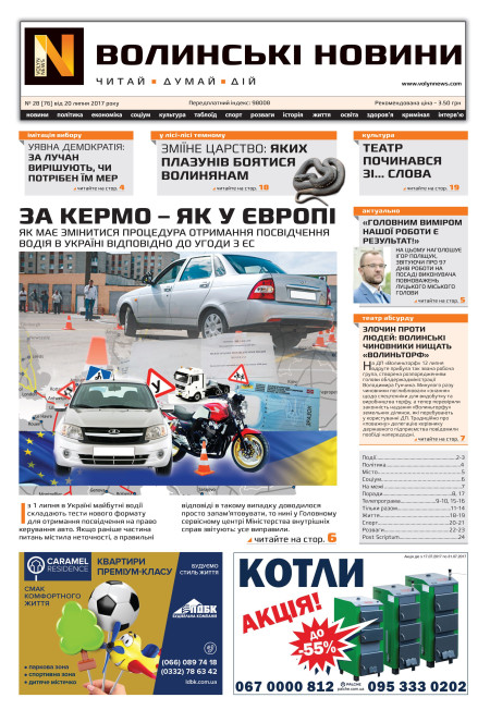 ВОЛИНСЬКІ НОВИНИ №28 (76) ВІД 20.07.2017