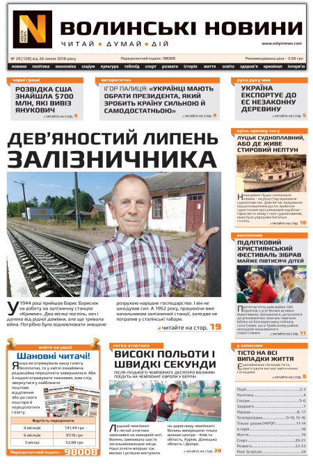 ВОЛИНСЬКІ НОВИНИ №29 (128) ВІД 26.07.2018