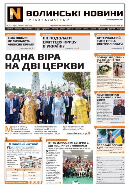ВОЛИНСЬКІ НОВИНИ №30 (129) ВІД 02.08.2018