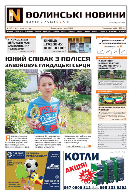 ВОЛИНСЬКІ НОВИНИ №29 (77) ВІД 27.07.2017