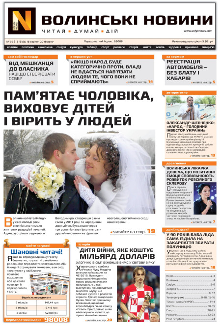 ВОЛИНСЬКІ НОВИНИ №32 (131) ВІД 16.08.2018