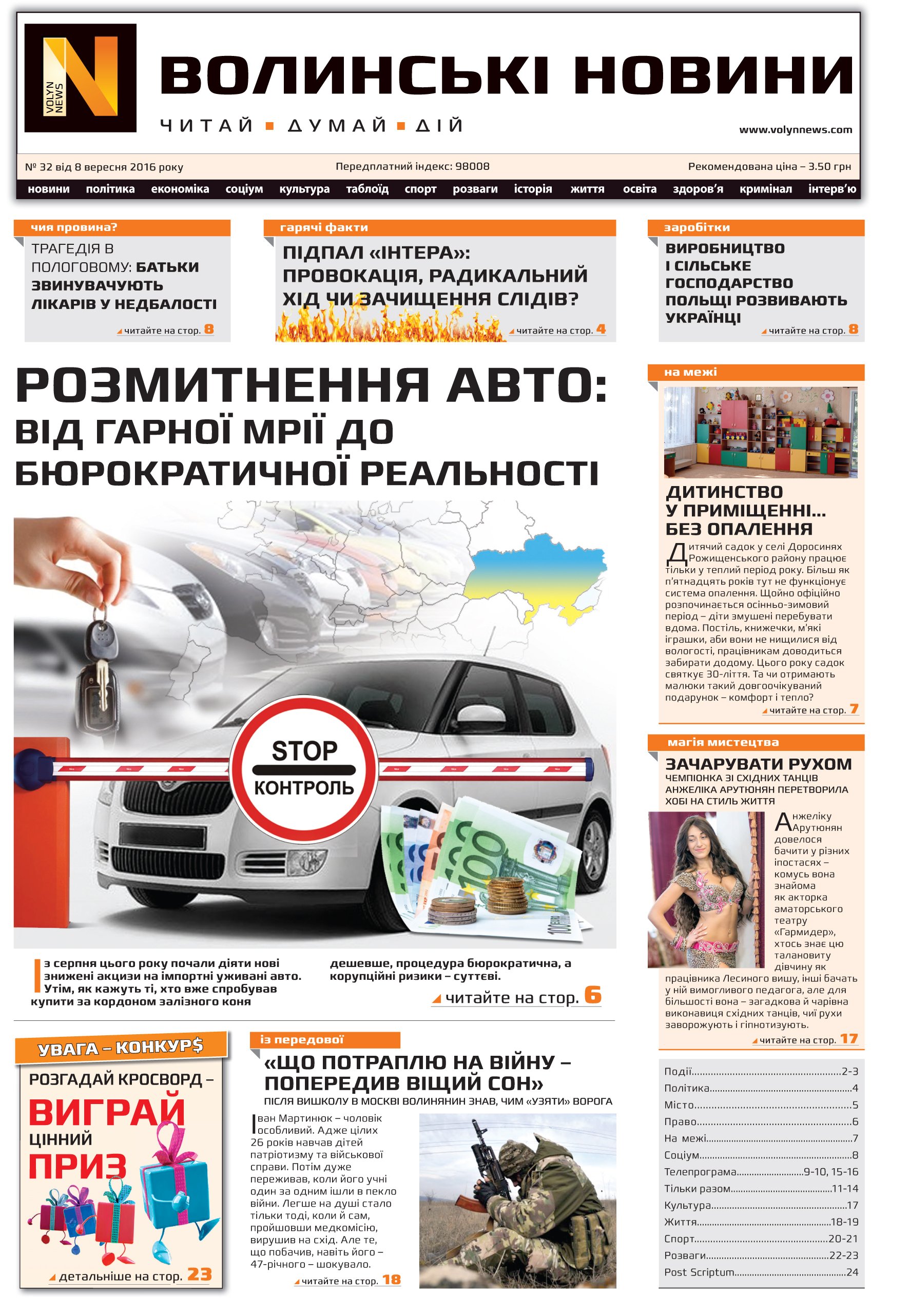 ВОЛИНСЬКІ НОВИНИ №32 ВІД 08.09.2016