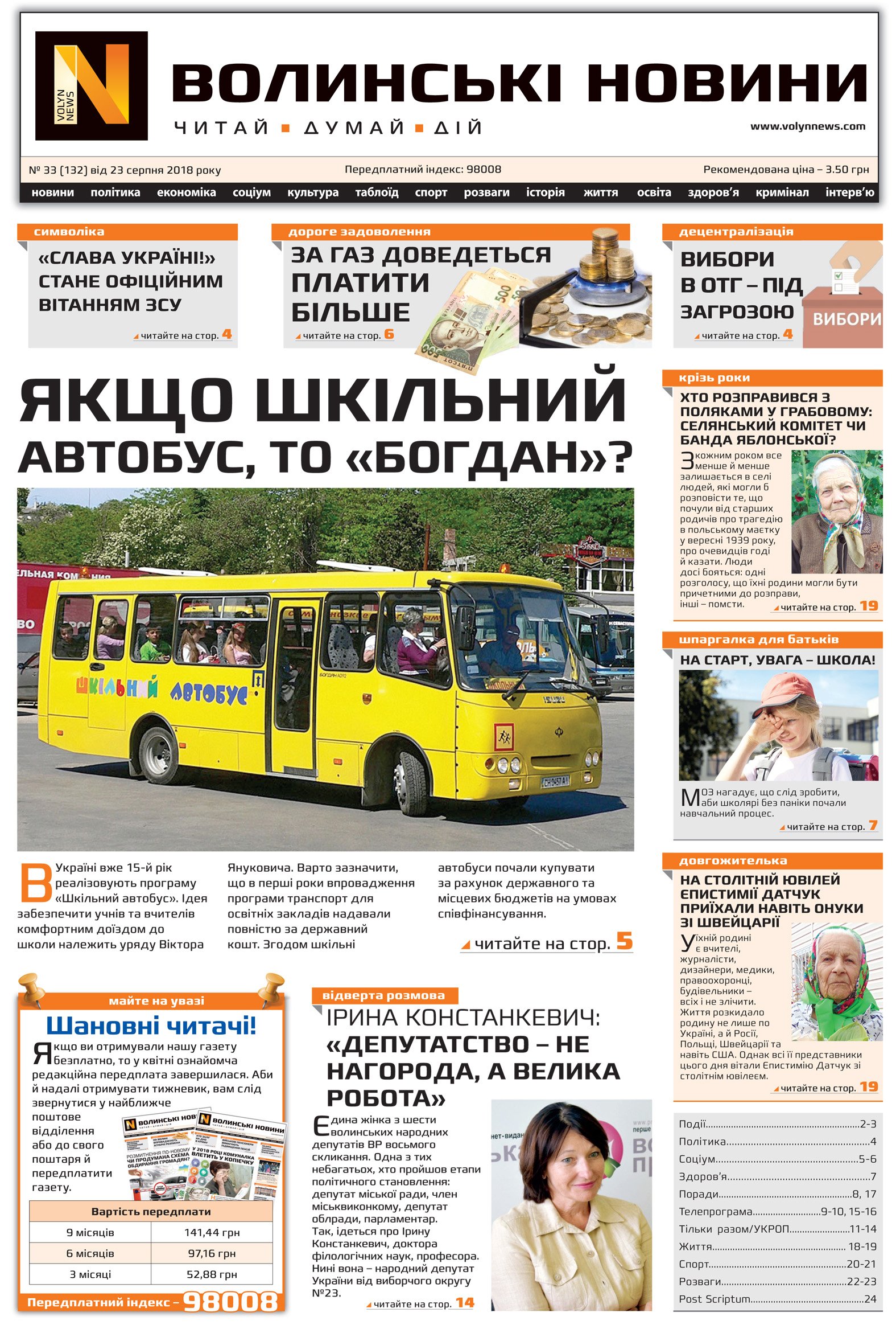 ВОЛИНСЬКІ НОВИНИ №33 (132) ВІД 23.08.2018