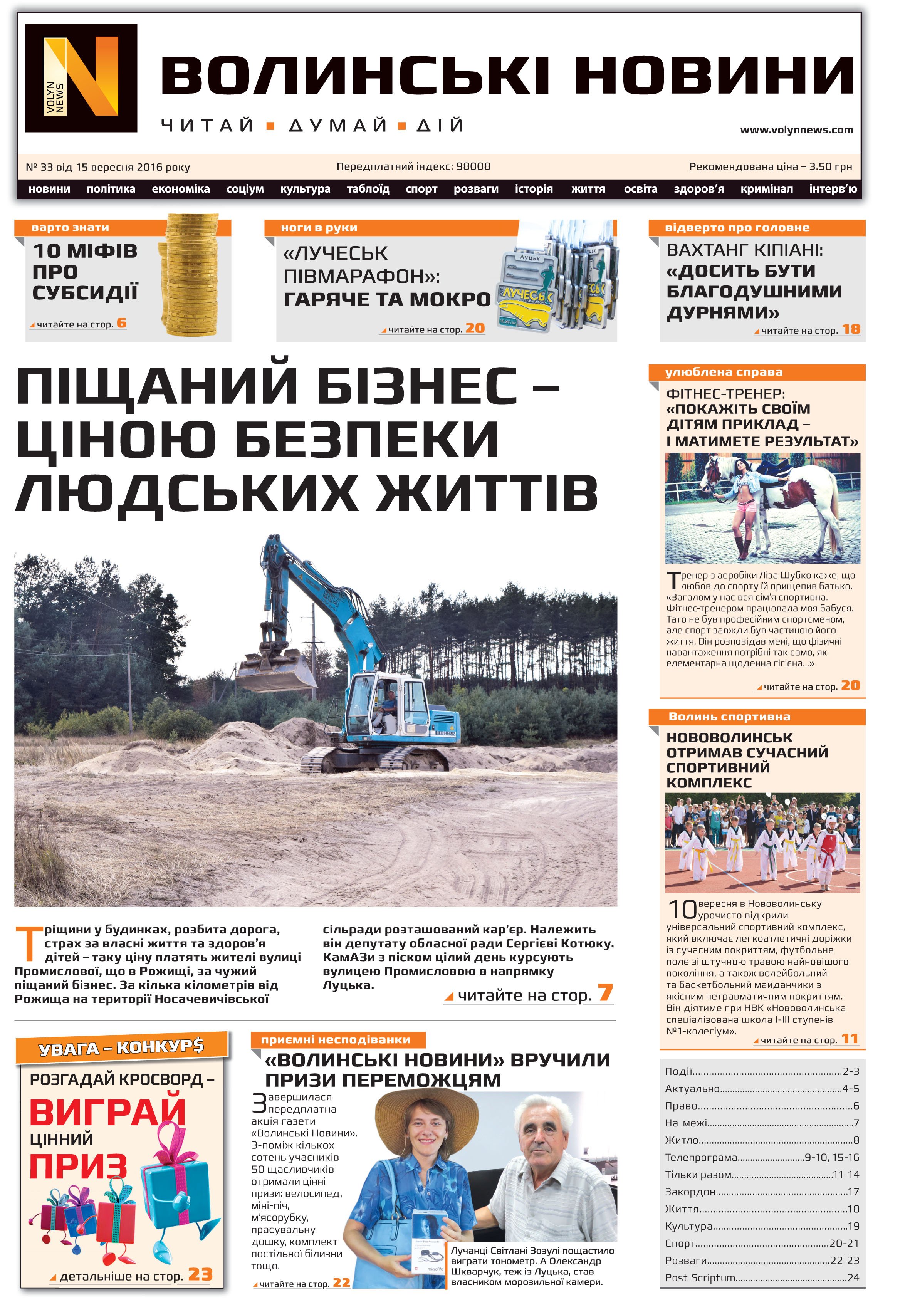 ВОЛИНСЬКІ НОВИНИ №33 ВІД 15.09.2016