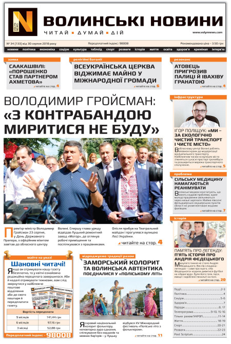 ВОЛИНСЬКІ НОВИНИ №34 (133) ВІД 30.08.2018