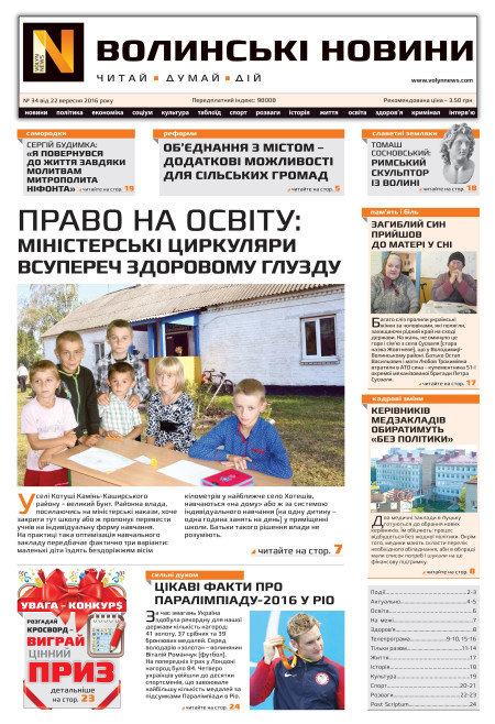 ВОЛИНСЬКІ НОВИНИ №34 ВІД 22.09.2016