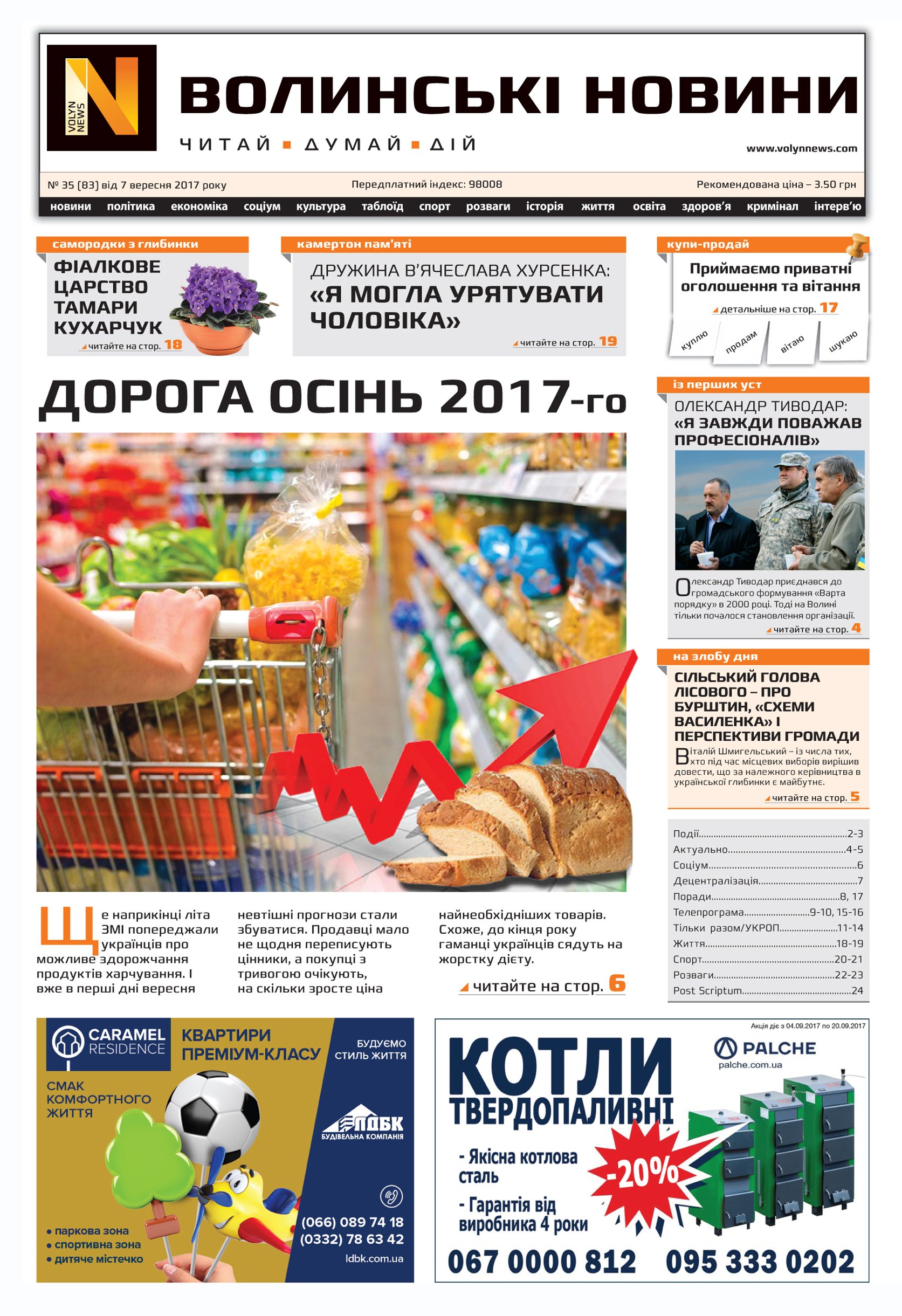 ВОЛИНСЬКІ НОВИНИ №35 (83) ВІД 07.09.2017