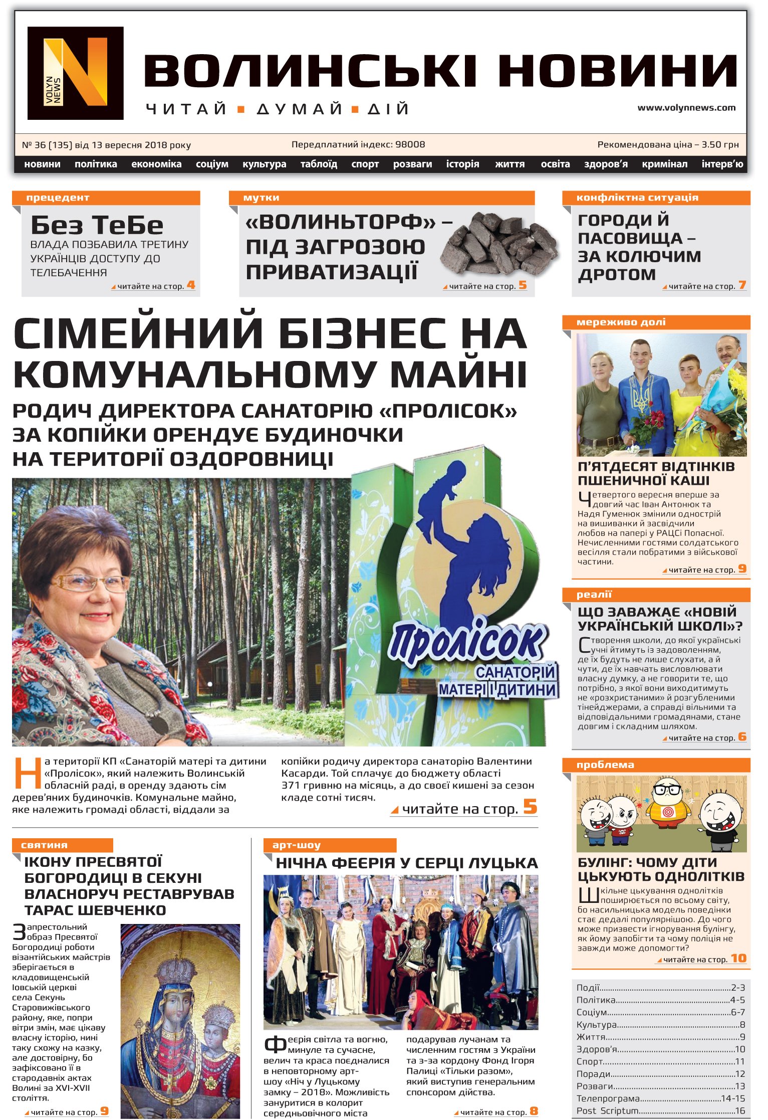 ВОЛИНСЬКІ НОВИНИ №36 (135) ВІД 13.09.2018