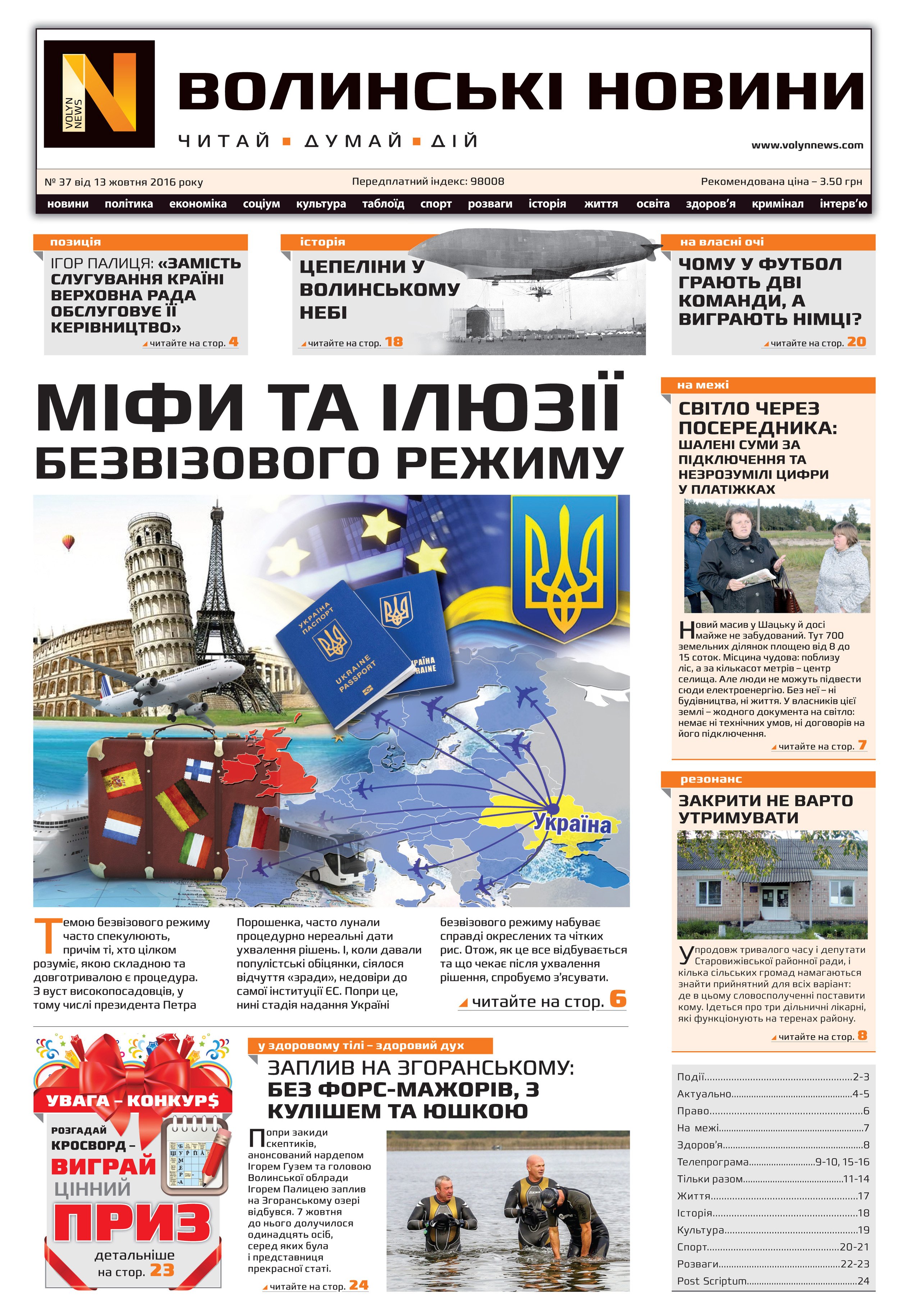 ВОЛИНСЬКІ НОВИНИ №37 ВІД 13.10.2016