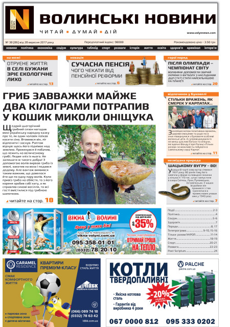 ВОЛИНСЬКІ НОВИНИ №38 (86) ВІД 28.09.2017