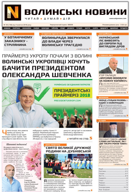 ВОЛИНСЬКІ НОВИНИ №39 (138) ВІД 04.10.2018