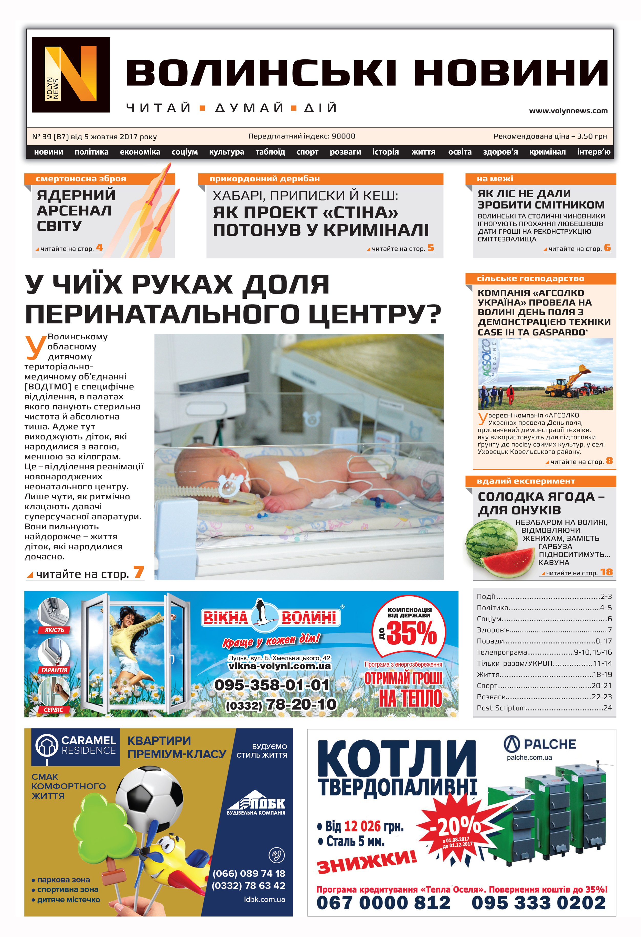 ВОЛИНСЬКІ НОВИНИ №39 (87) ВІД 05.10.2017