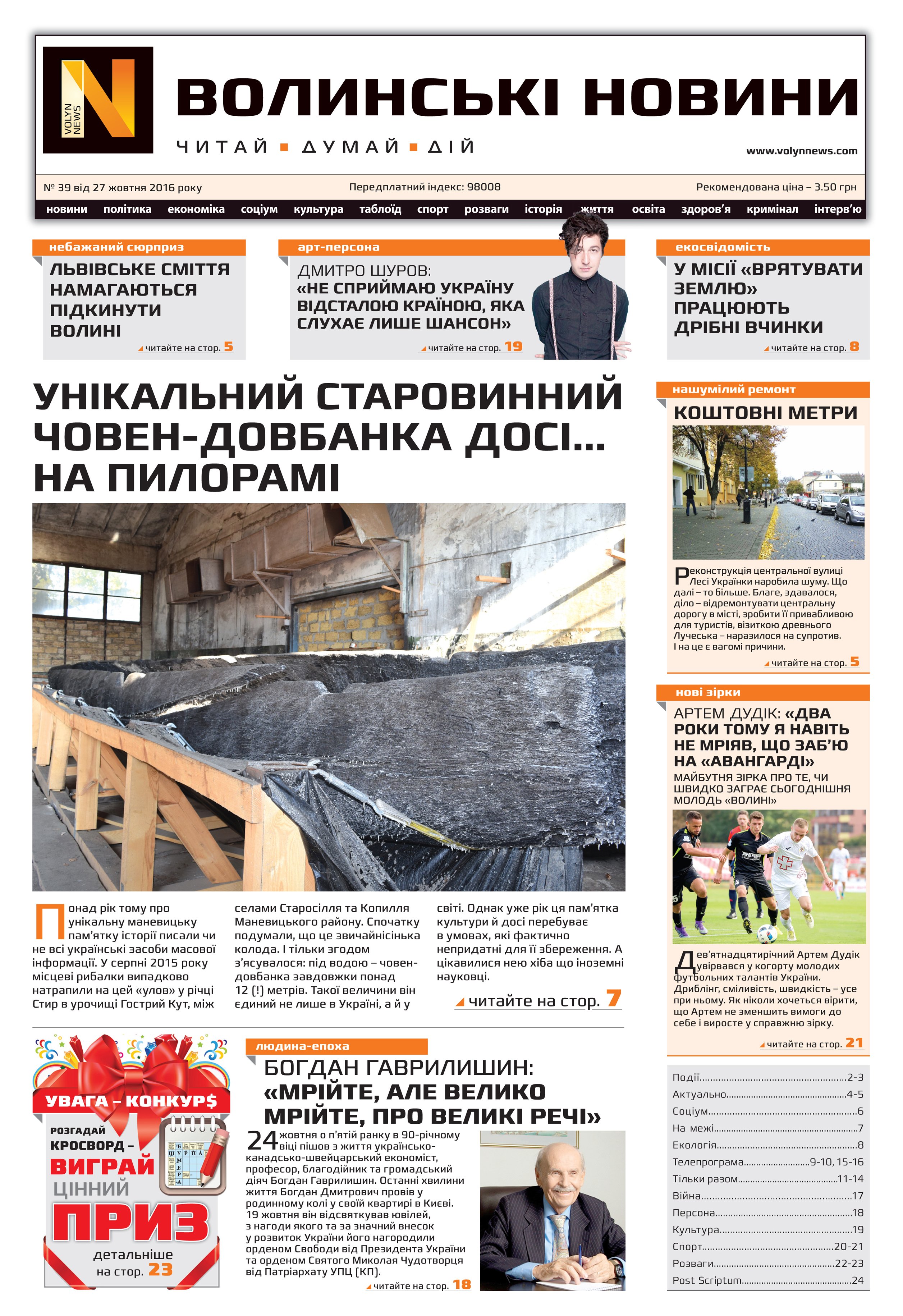 ВОЛИНСЬКІ НОВИНИ №39 ВІД 27.10.2016