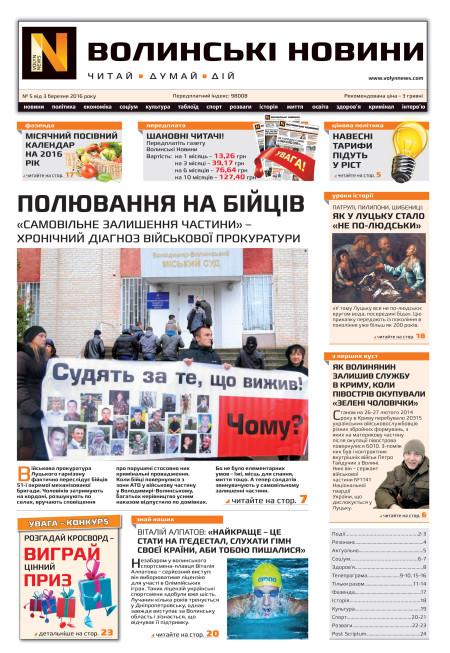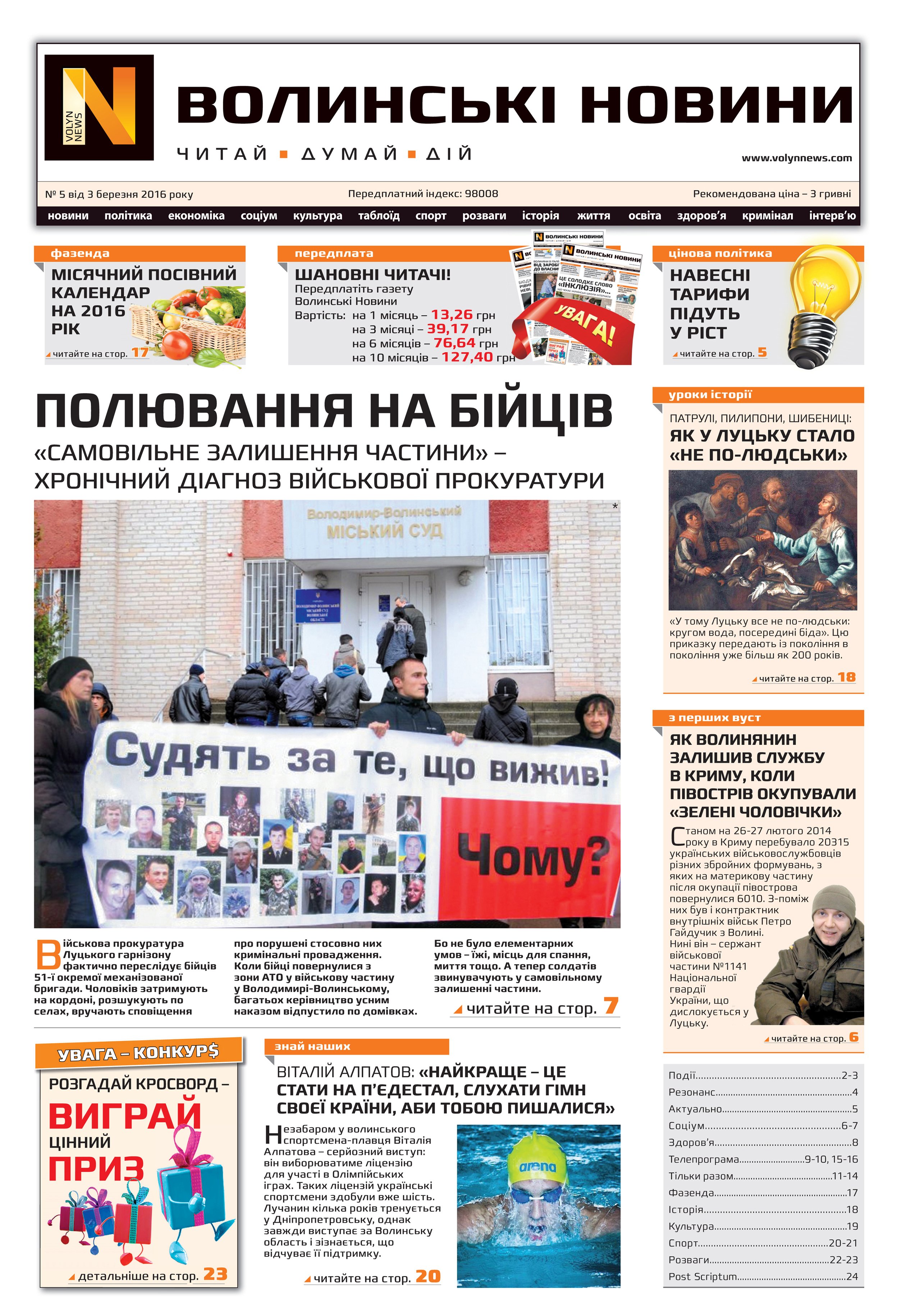 ВОЛИНСЬКІ НОВИНИ №5 ВІД 03.03.2016