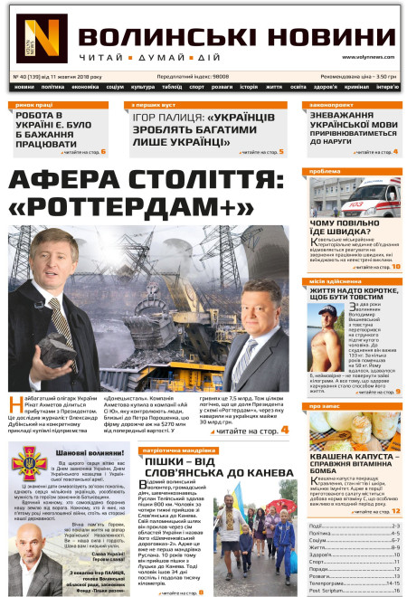 ВОЛИНСЬКІ НОВИНИ №40 (139) ВІД 11.10.2018