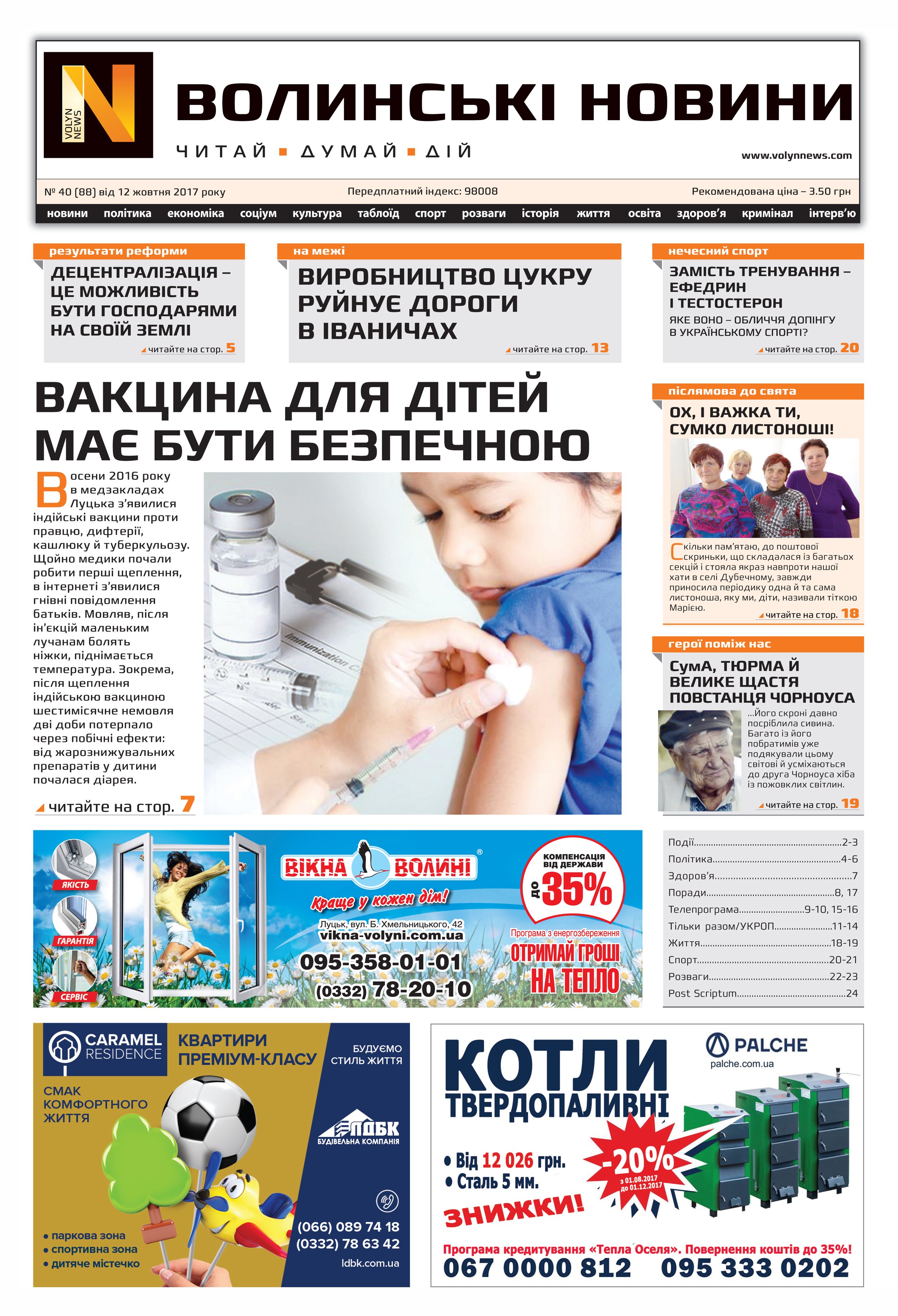 ВОЛИНСЬКІ НОВИНИ №40 (88) ВІД 12.10.2017