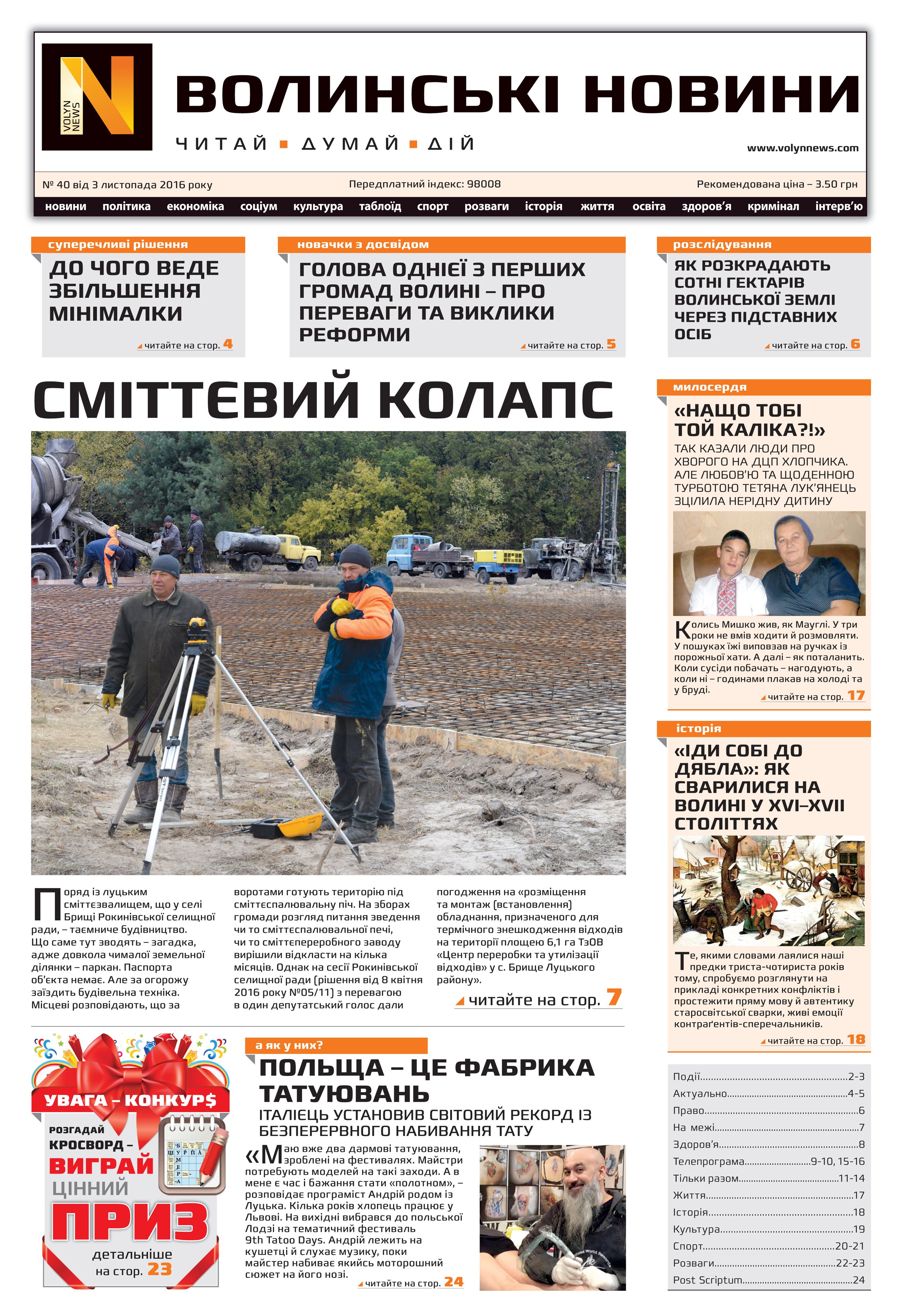 ВОЛИНСЬКІ НОВИНИ №40 ВІД 03.11.2016