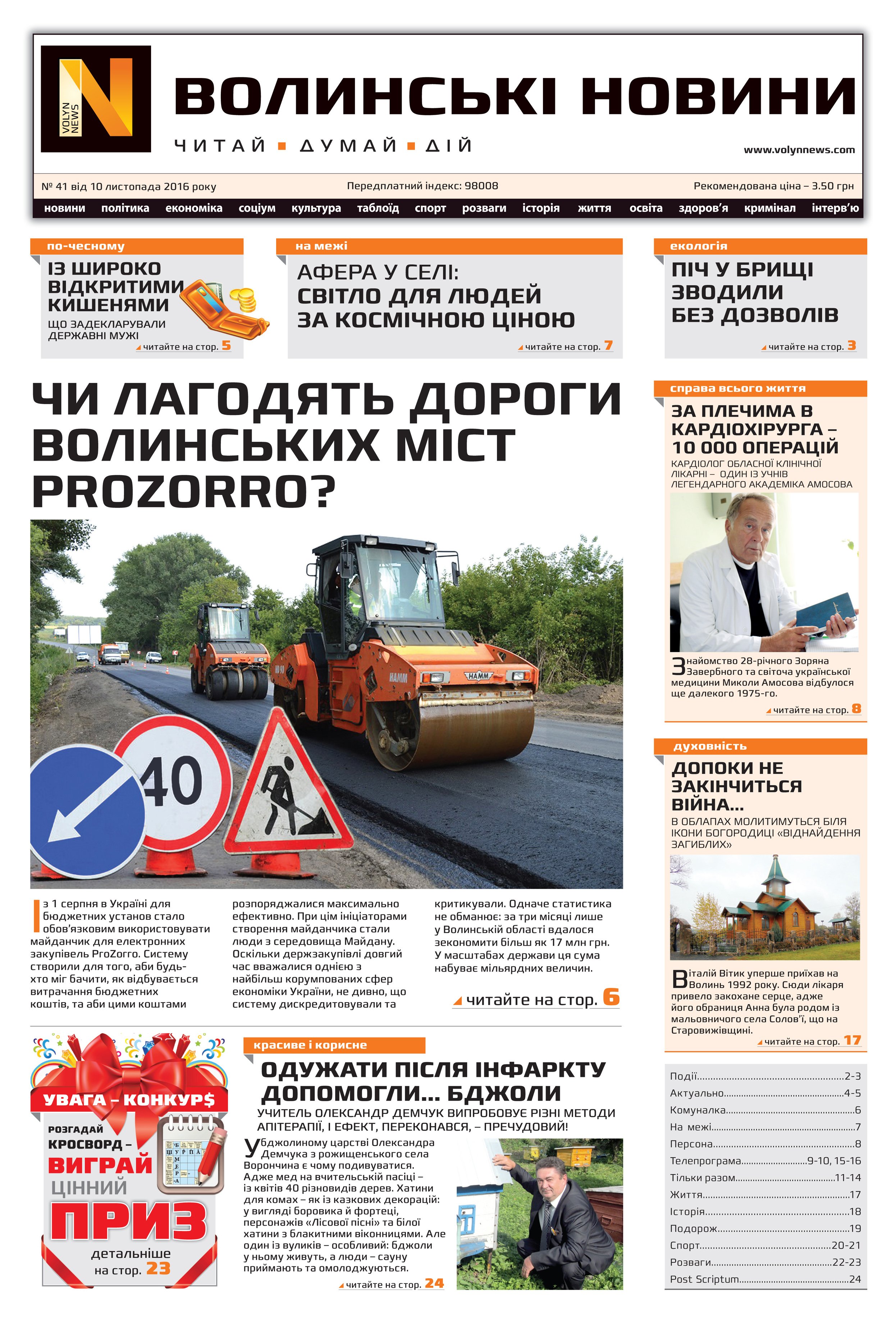 ВОЛИНСЬКІ НОВИНИ №41 ВІД 10.11.2016