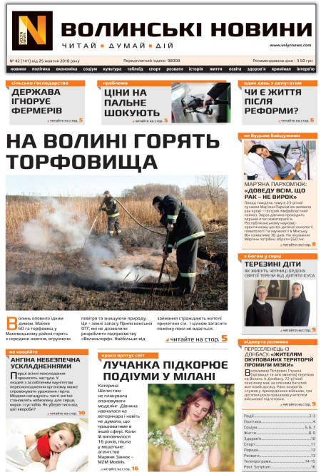 ВОЛИНСЬКІ НОВИНИ №42 (141) ВІД 25.10.2018
