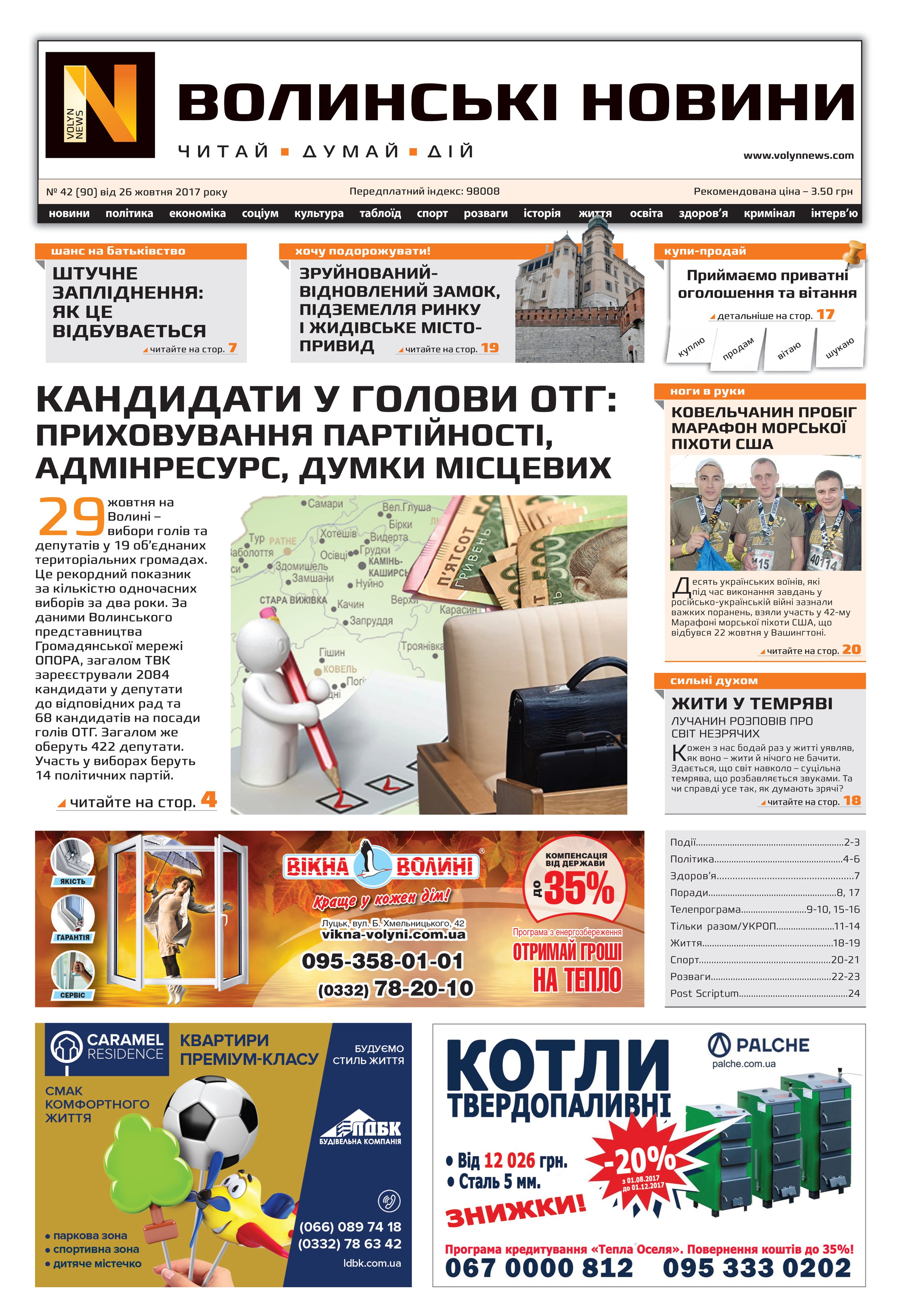 ВОЛИНСЬКІ НОВИНИ №42 (90) ВІД 26.10.2017