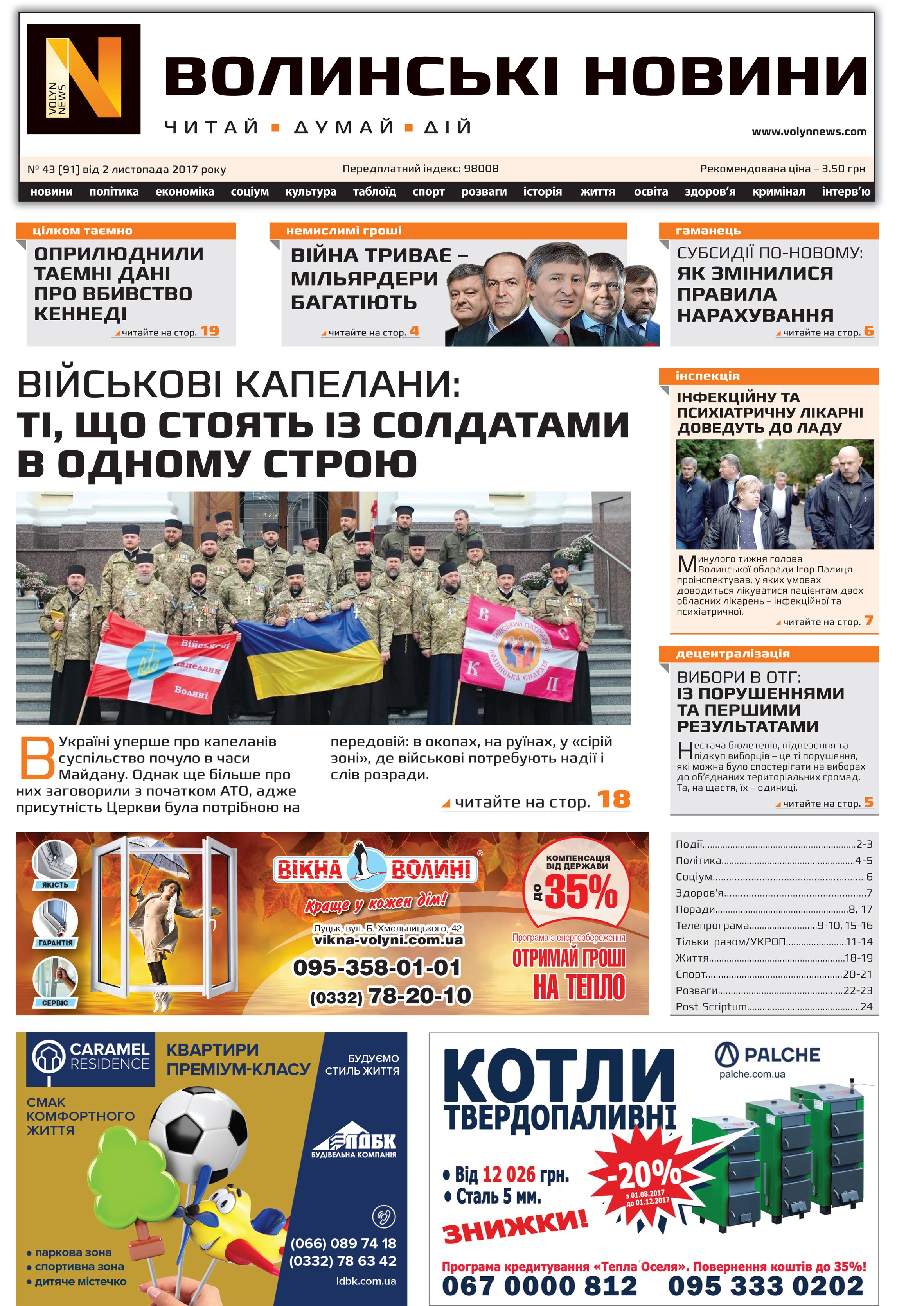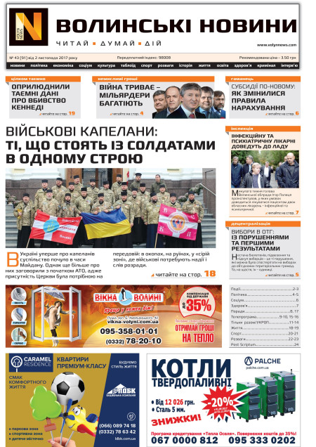 ВОЛИНСЬКІ НОВИНИ №43 (91) ВІД 02.11.2017