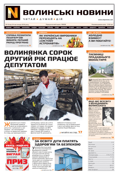 ВОЛИНСЬКІ НОВИНИ №43 ВІД 24.11.2016