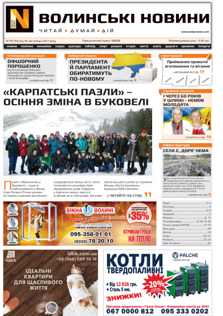 ВОЛИНСЬКІ НОВИНИ №45 (93) ВІД 16.11.2017