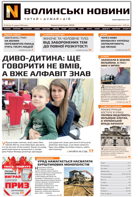 ВОЛИНСЬКІ НОВИНИ №46 ВІД 15.12.2016