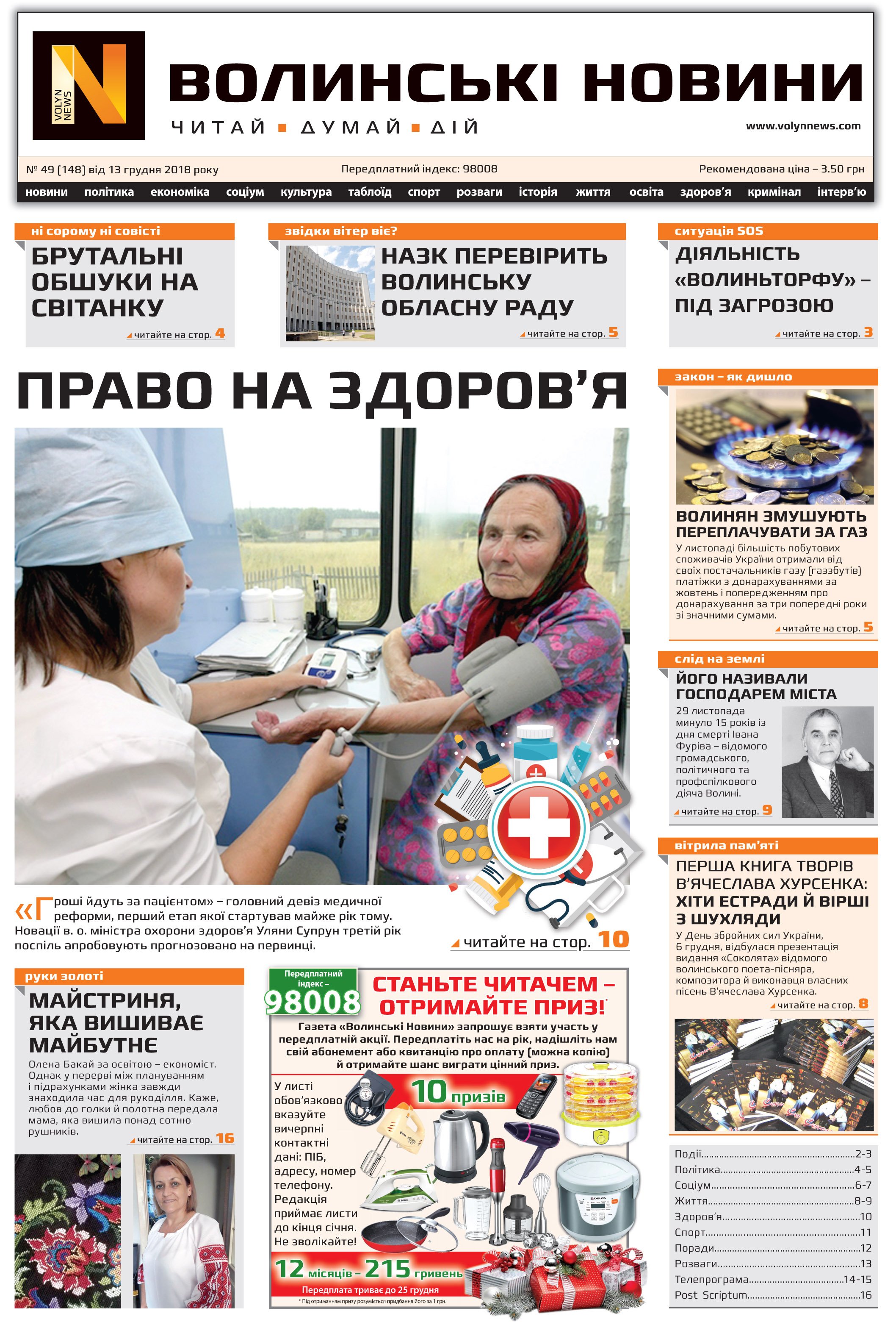 ВОЛИНСЬКІ НОВИНИ №49 (148) ВІД 13.12.2018