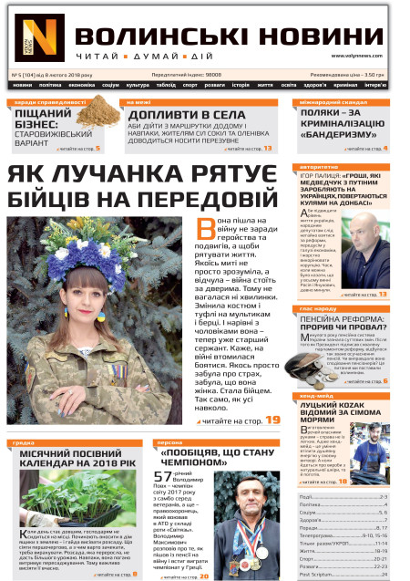 ВОЛИНСЬКІ НОВИНИ №5 (104) ВІД 08.02.2018