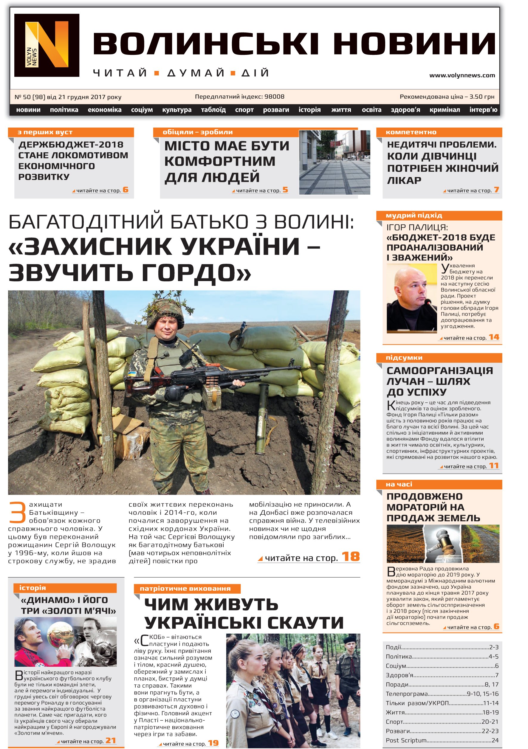 ВОЛИНСЬКІ НОВИНИ №50 (98) ВІД 21.12.2017
