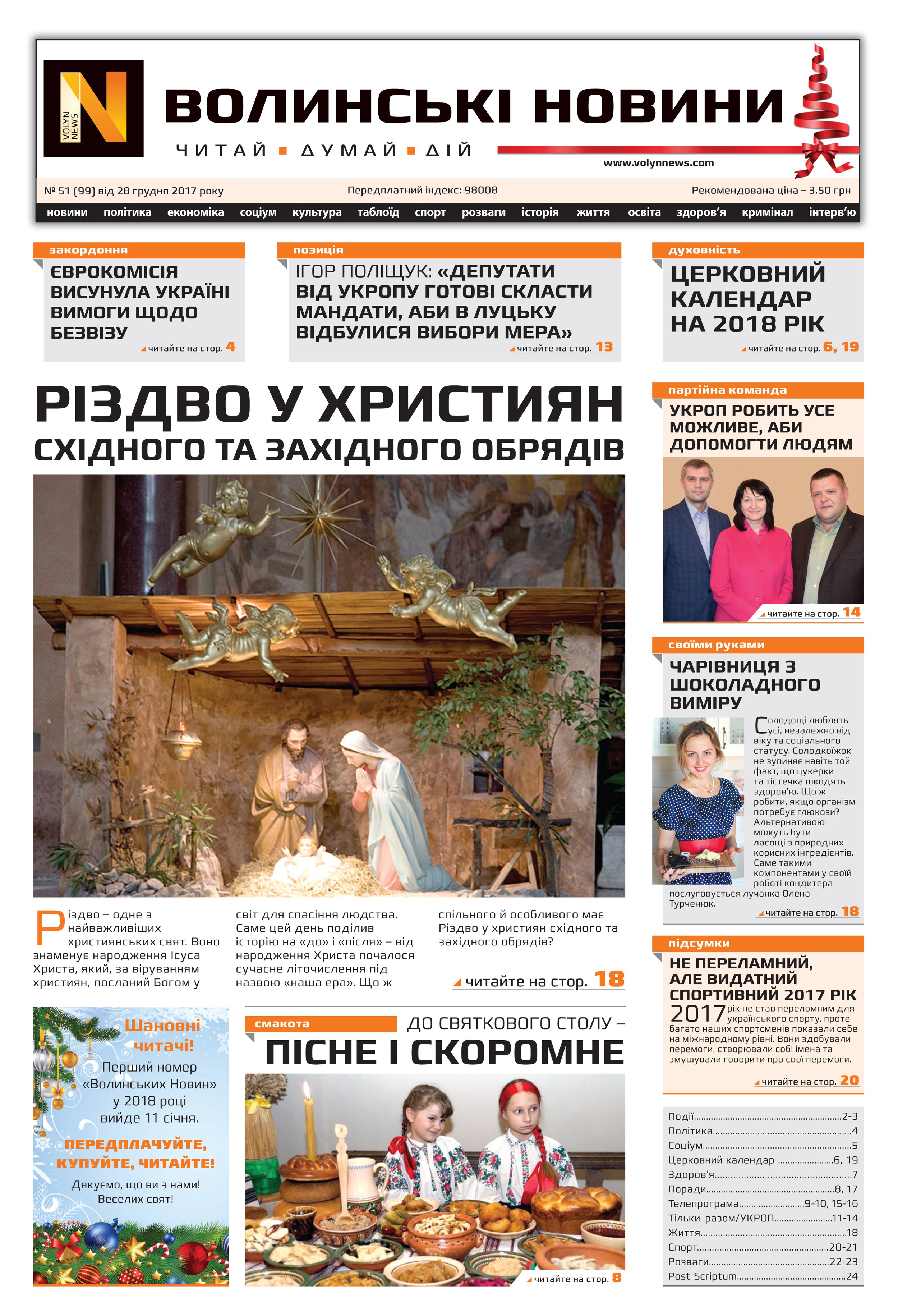 ВОЛИНСЬКІ НОВИНИ №51 (99) ВІД 28.12.2017