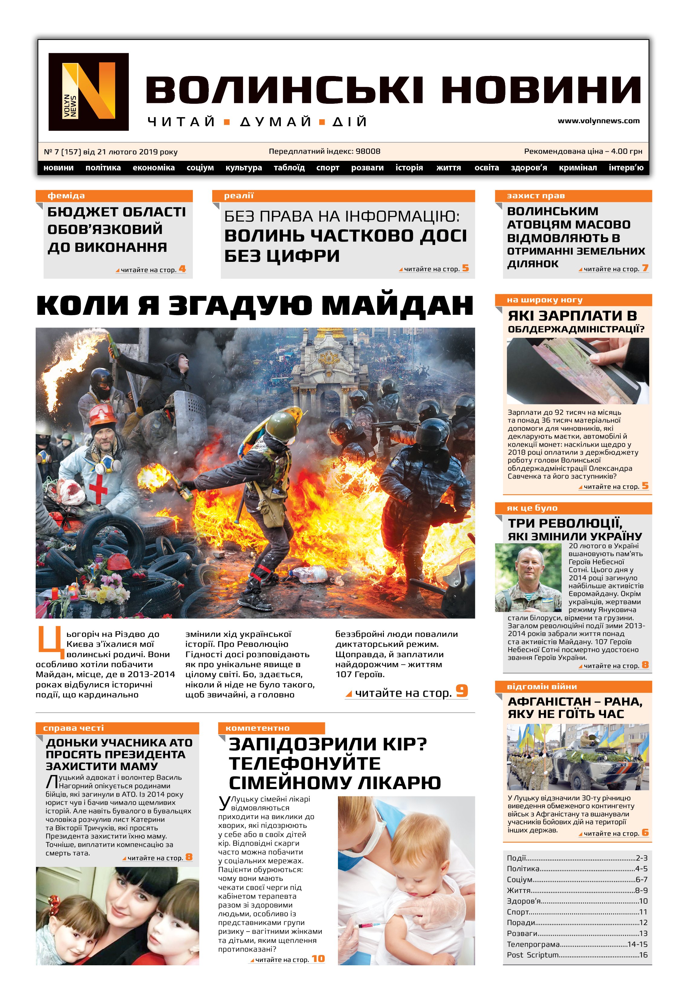ВОЛИНСЬКІ НОВИНИ №7 (157) від 21.02.2019