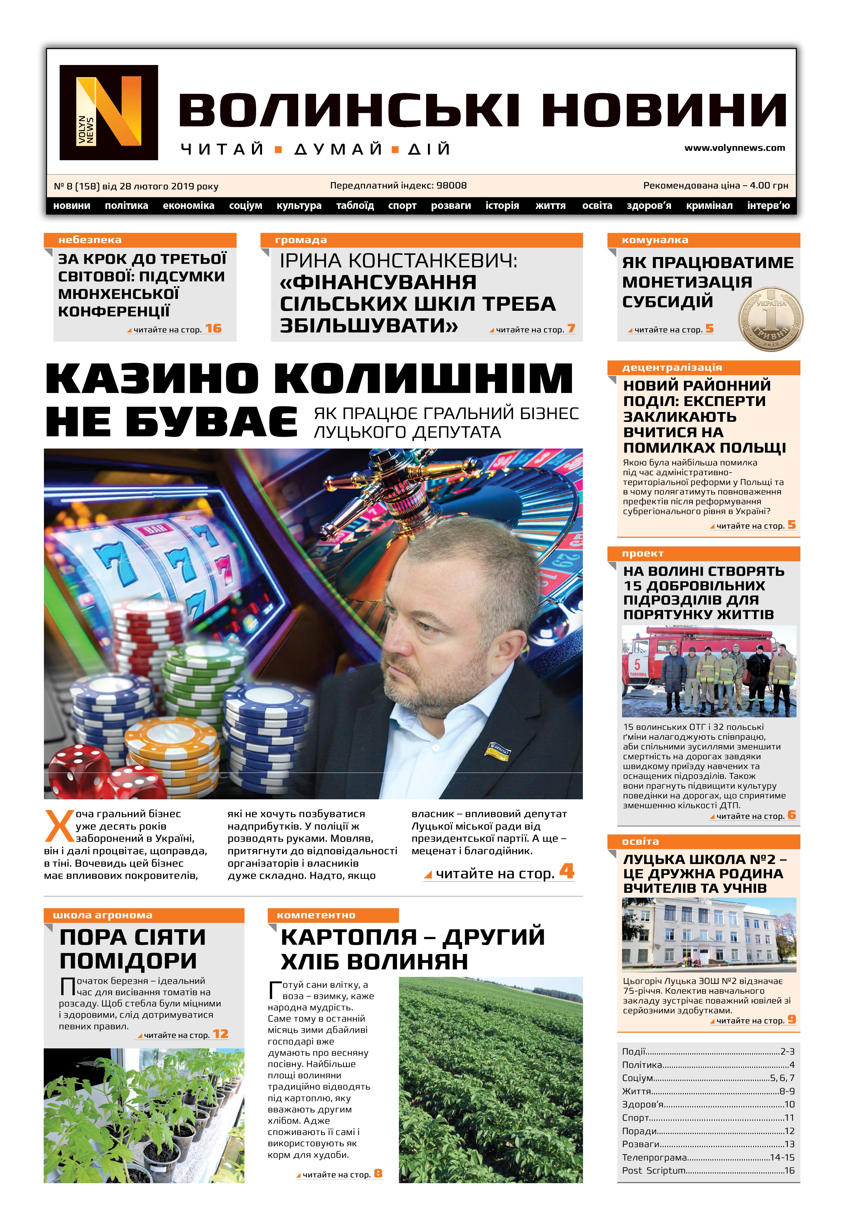 ВОЛИНСЬКІ НОВИНИ № 8(158) від 28.02.2019