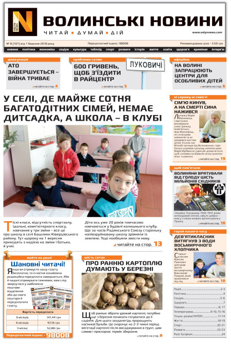 ВОЛИНСЬКІ НОВИНИ №8 (107) ВІД 01.03.2018