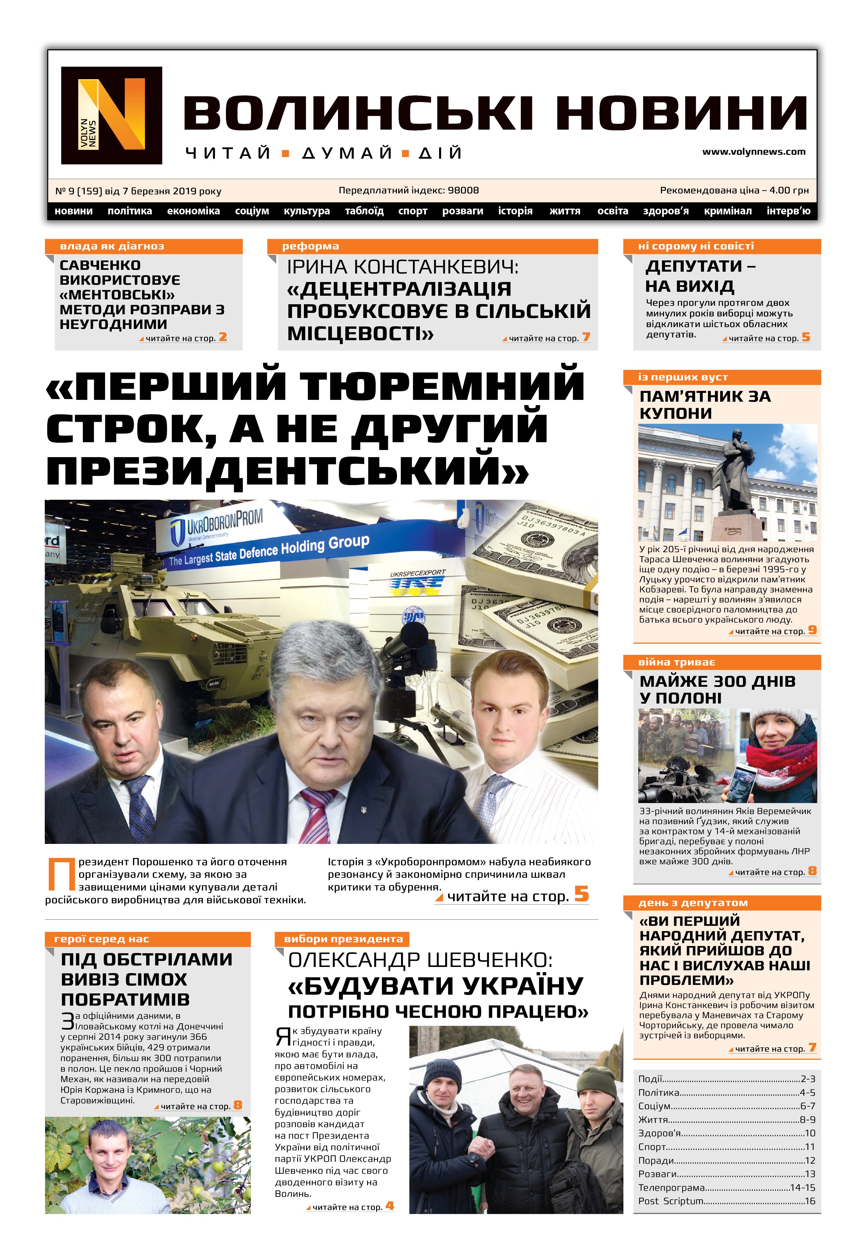 ВОЛИНСЬКІ НОВИНИ №9 (159) від 07.03.2019