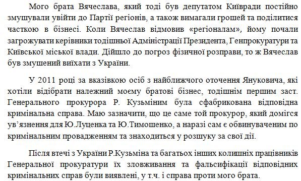 Натомість справу, яку Генпрокуратура 2011 року завела на В'ячеслава Супруненка, Олександр називає сфабрикованою. З його слів, у В'ячеслава регіонали вимагали частку його бізнесу та гроші. А коли платити він відмовився, то дійшло до погроз – мовляв, саме тому Вячеславу довелось тікати з України.