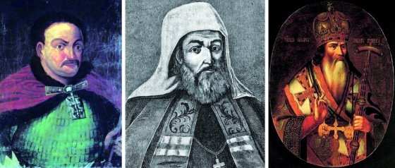 На фото - три людини, що вiдiграли ключову роль у захопленнi Москвою Української Православної Церкви: гетьман Самойлович, митрополит Гедеон i патрiарх Йоаким.