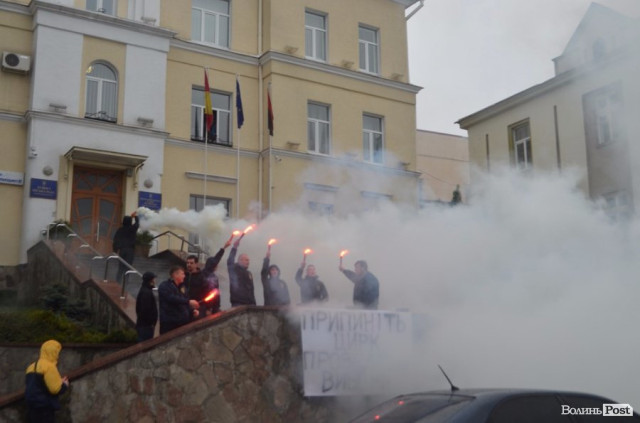 Під Луцькрадою активісти палили піротехніку: вимагають якнайшвидше провести вибори мера