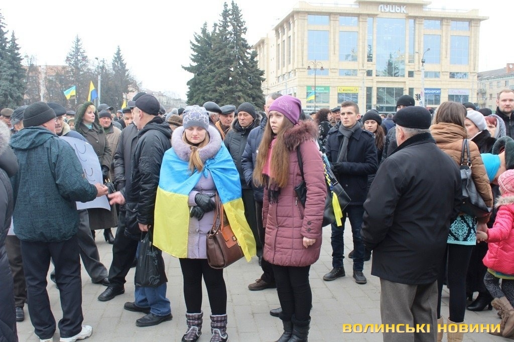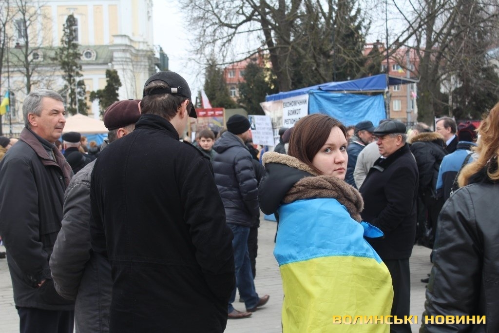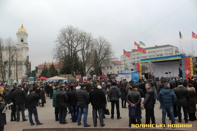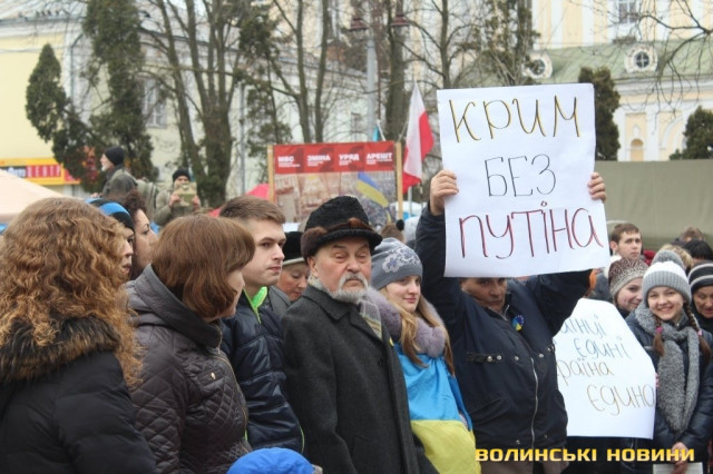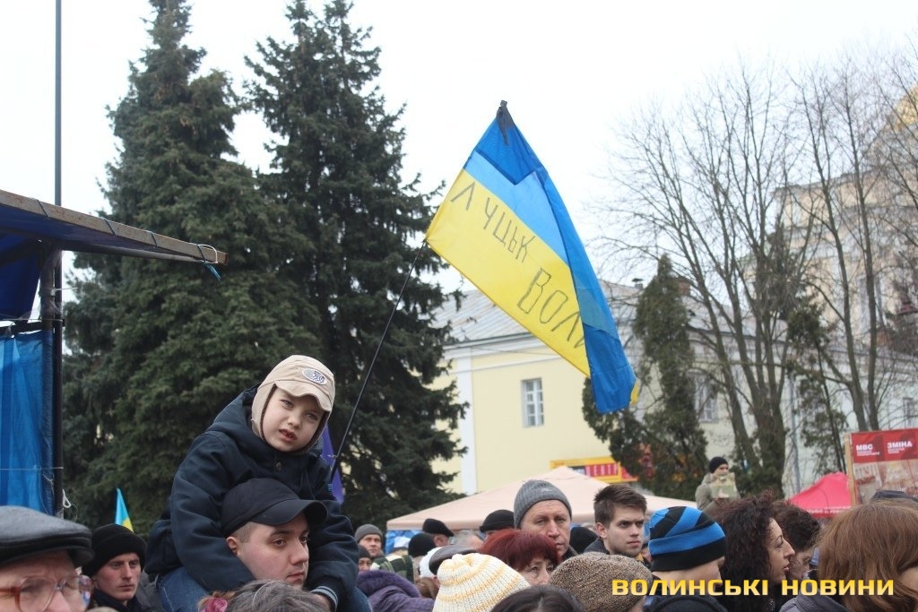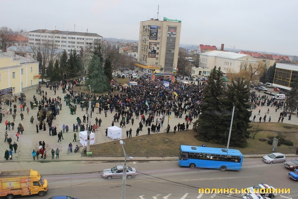 13:20 Зі сцени Майдану виступає голова облради Валентин Вітер, який оголосив про те, що засуджує дії Росії. Окрім того, розповідає про підготовку до мобілізації волинян.