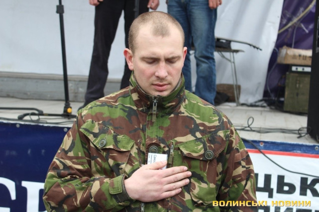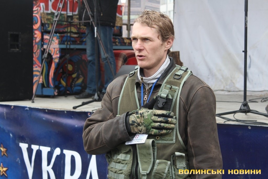 13:55 Слово взяв очільник Правого сектору на Волині Павло Данильчук. Він закликає людей гуртуватися та ще раз наголошує на підготовці до мобілізації. Данильчук запрошує на сцену представників Волинської самооборони, Автомайдану тощо.