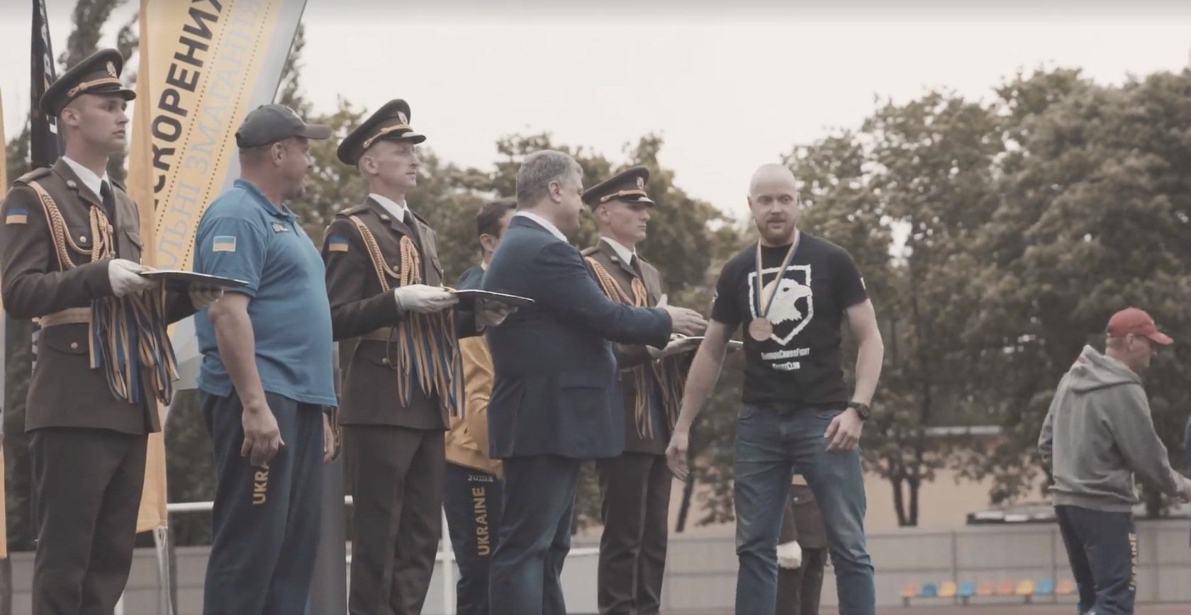 На запису видно, що Толмачов потиснув руку іншим учасникам церемонії, але проігнорував протягнуту руку президента. Толмачов не відреагував на Порошенка, навіть коли той поплескав його по плечу.